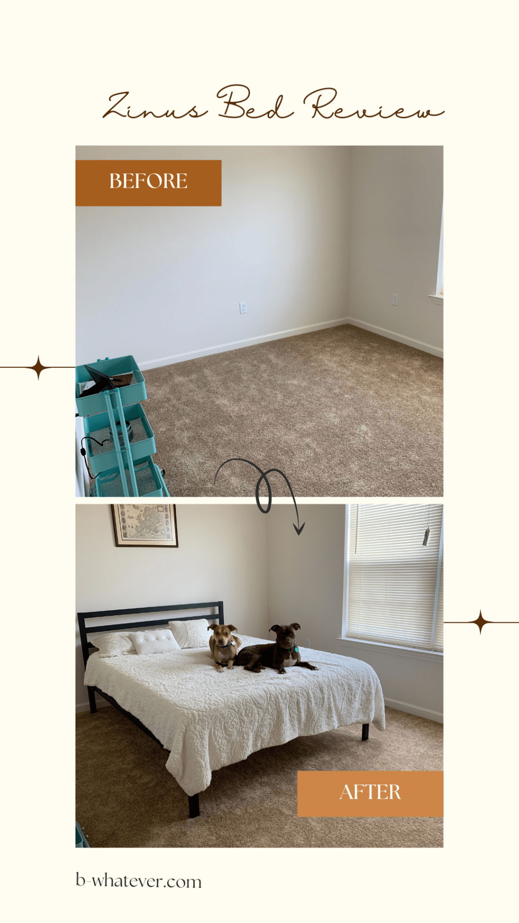 Overall, this was a great experience! I would recommend Zinus if you need a guest bed for sure! I’m not sure of the life of the mattress because we’ve only had it for a few weeks and only one person has slept on it. So I’m not sure how well it would hold up as a primary, sleep on it every night mattress… but it works perfectly for us in this spare room!