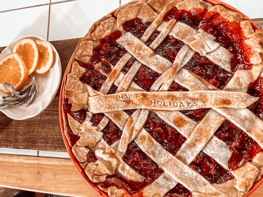 In a medium saucepan, combine Fresh Cranberries, Cherry Pie filling, Zest and Juice from Naval Orange, and Sugar. Cook over medium heat until Cranberries are softened. (Taste filling and add more sugar if you want a sweeter filling)